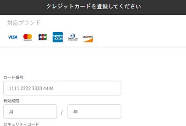 - ・決済はクレジットーカードクレジットカード(Visa, Mastercard, JCB, American Express, Diners Club, Discover)と、